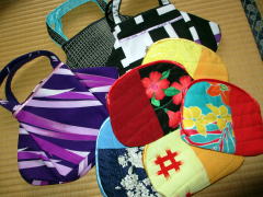 文庫蔵で眠っていた着物をほごし、「今の若い人たちにも使ってもらえそうな品々を」と日々創意工夫していました。なかなか使い勝手がよいとおともだちにも喜んでもらっていました。女学生時代につちかった「大正ロマン」的な色彩の感覚は、娘、そして孫のSayuriへと受け継がれています。